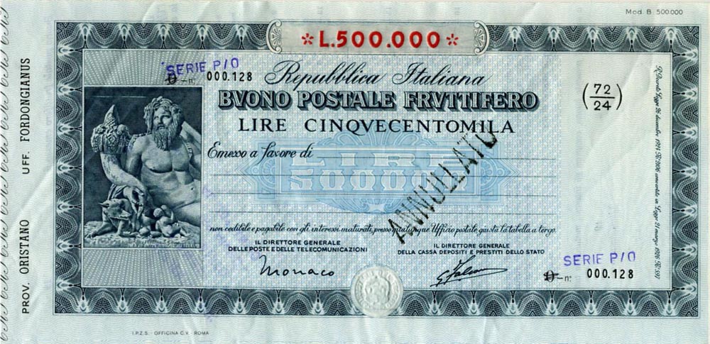 BF.344- 500.000 Lire - Firma 1 - Rarità: C - Tipo: Nuovo - Serie P/O su serie O. - Matrice Unica.