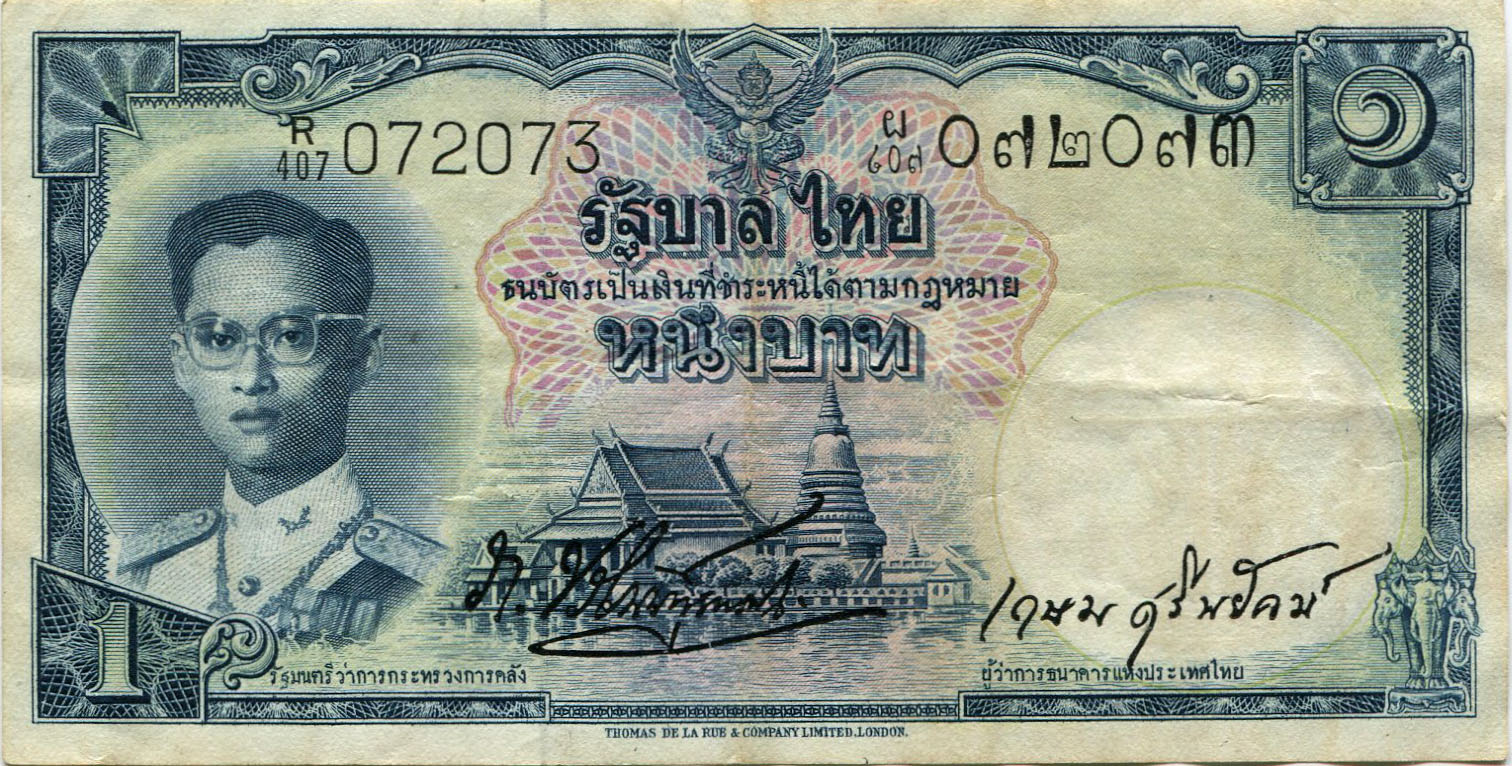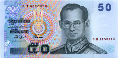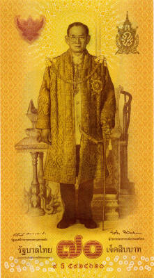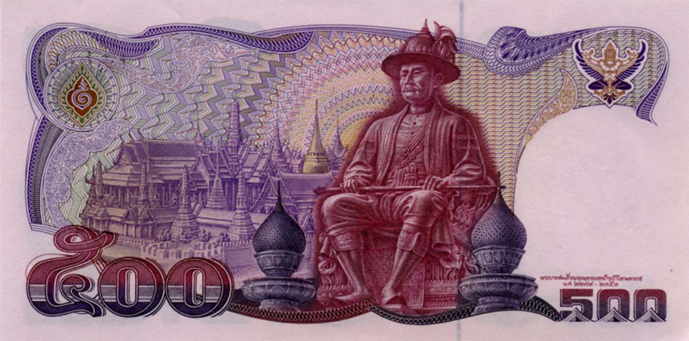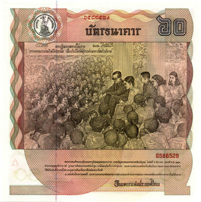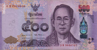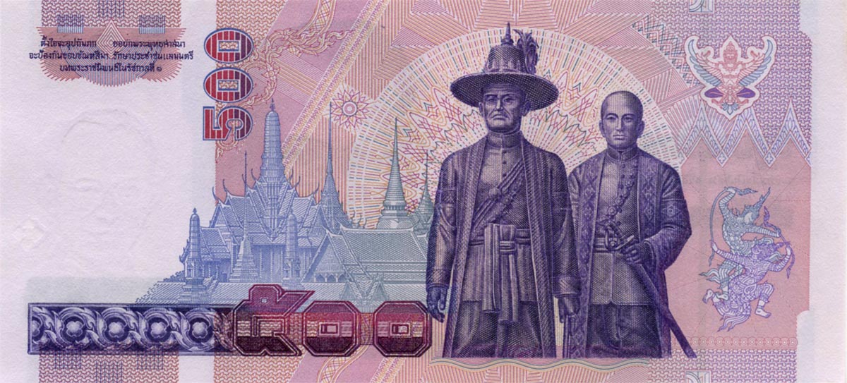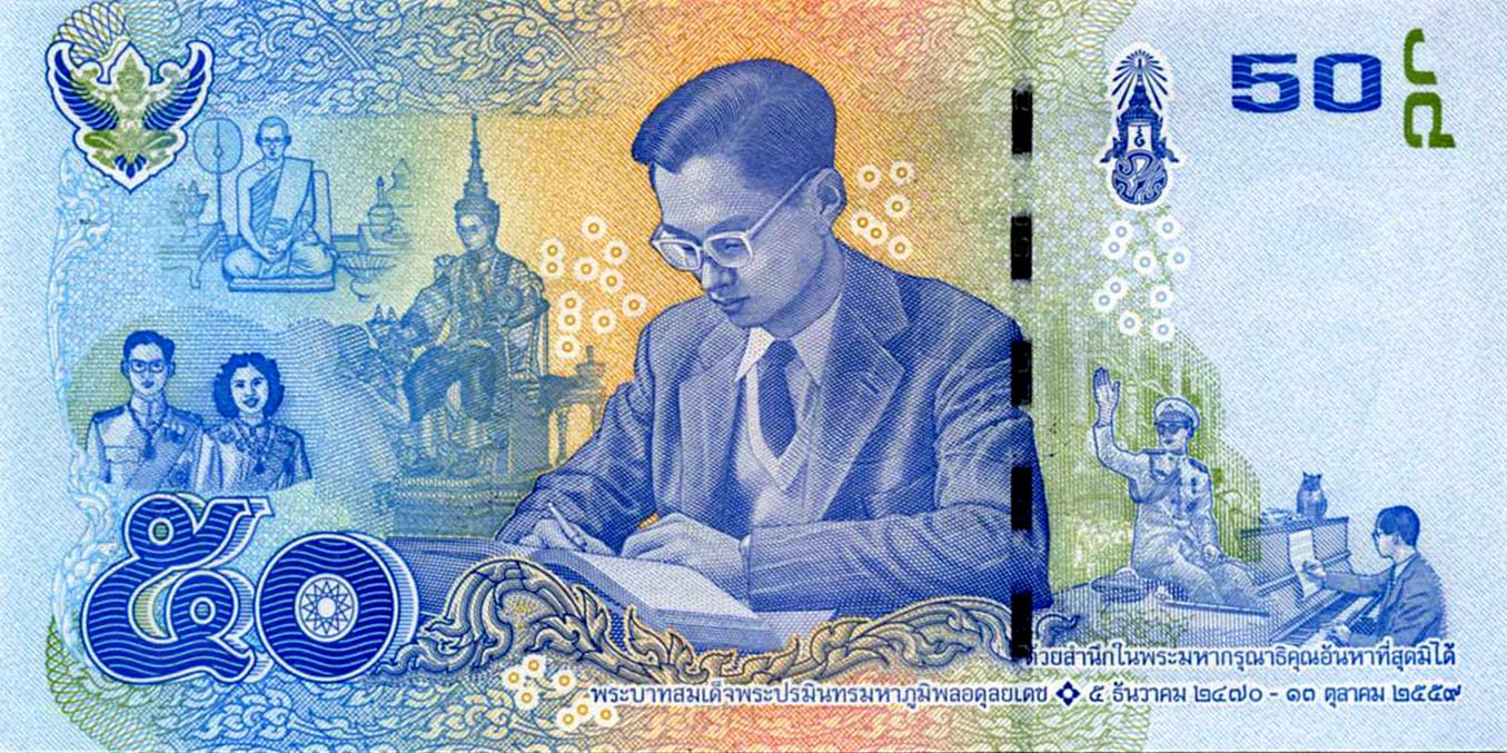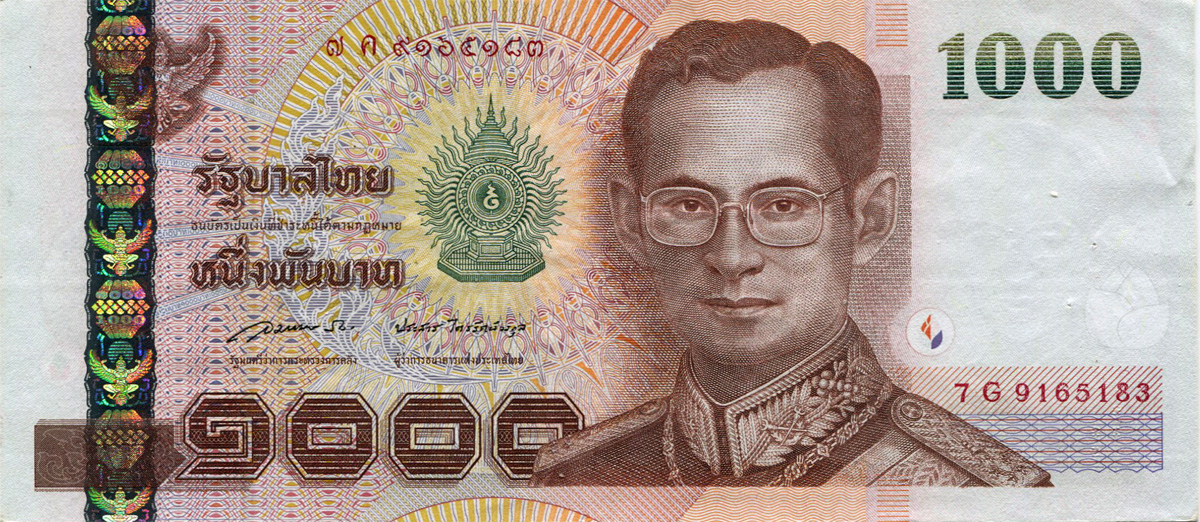 Watermark: King Rama IX. Printer: Thai Banknote Printing Works.