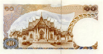 P.83a - 10 Baht - ND(1969-78). Wat Benchamabophitr temple.