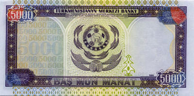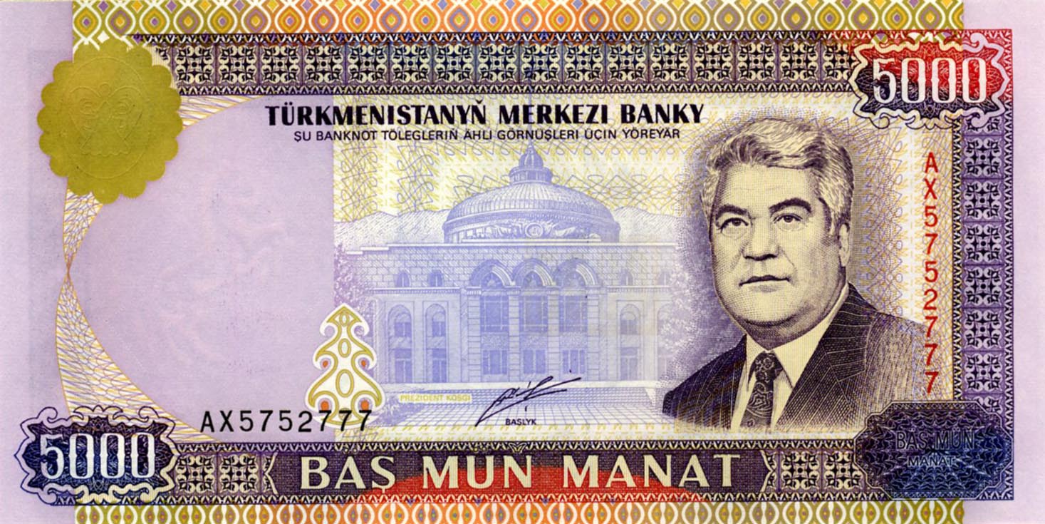 P.12a - 5000 Manat - 1999. President S. Niyazov at right.