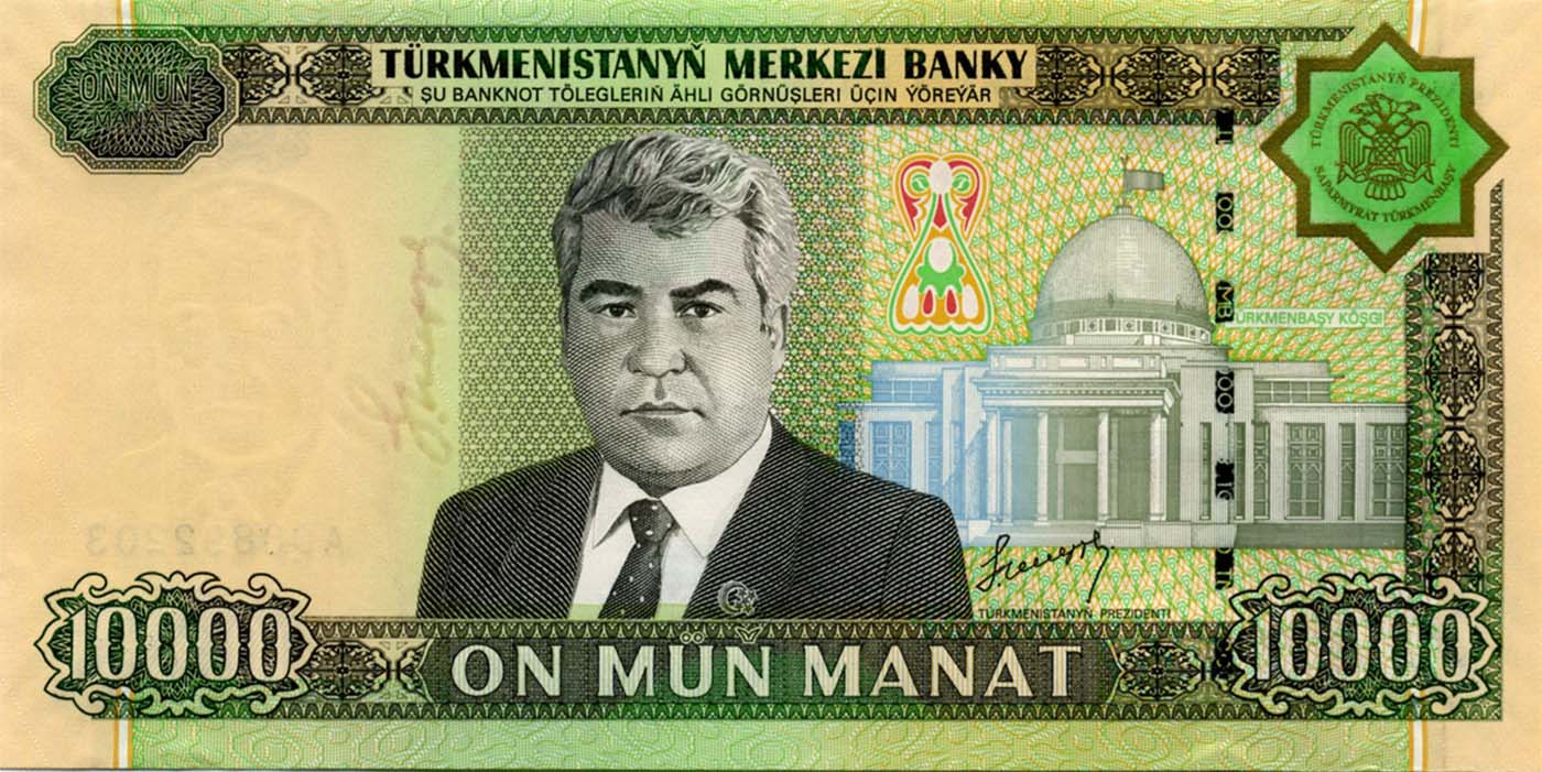 P.15 - 10,000 Manat - 2003. President S. Niyazov at right.