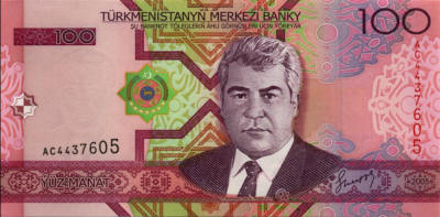 P.6b - 100 Manat - 1995. President S. Niyazov at right.