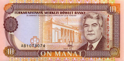 P.3 - 10 Manat - ND (1993). President S. Niyazov at right.