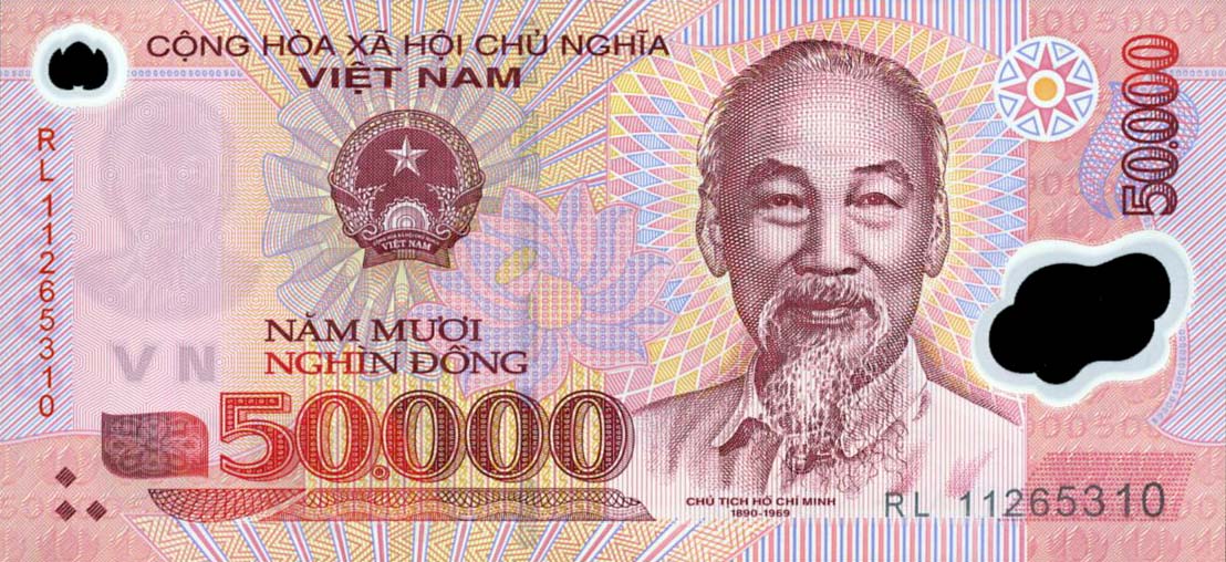 P.111s- 50,000 Dông - 1990 (1993). Portrait Ho Chi Minh at center right.