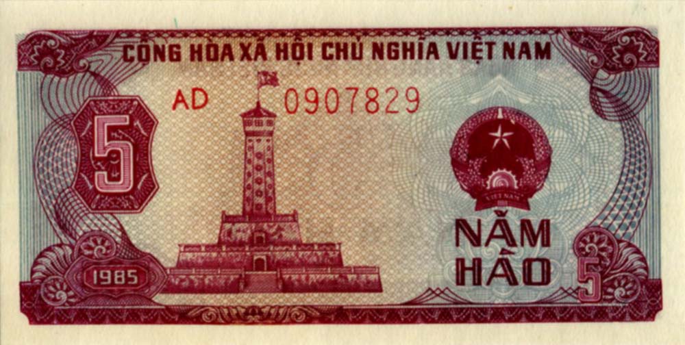 P.89a - 5 Hao - 1985. Tower of Ha Noi , arms.